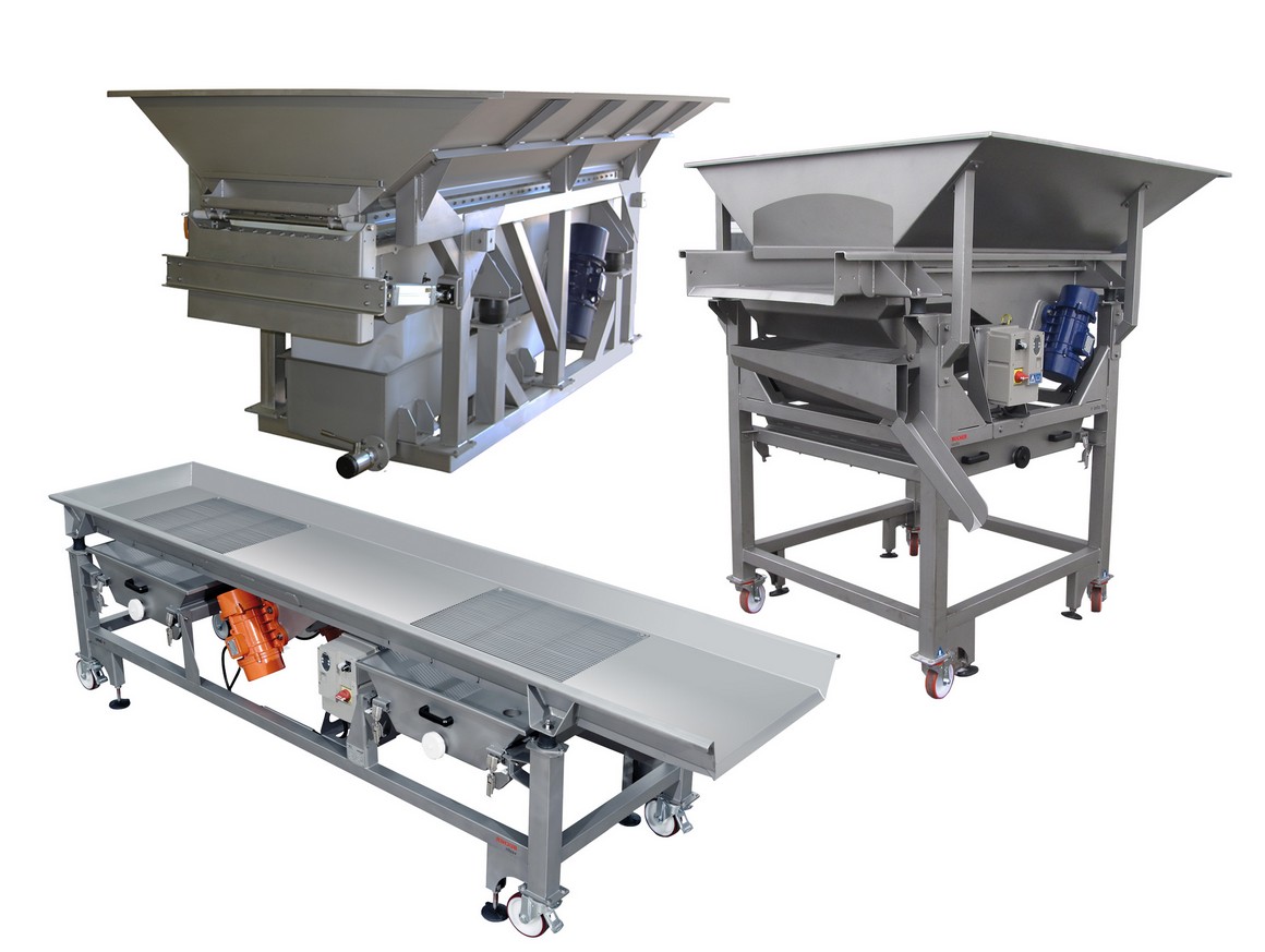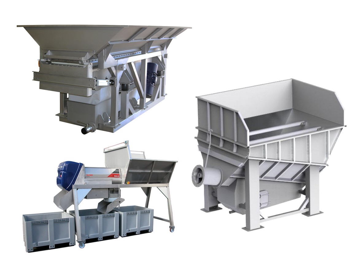 Übernahmetrichter, Rütteltische, Schneckenförderer