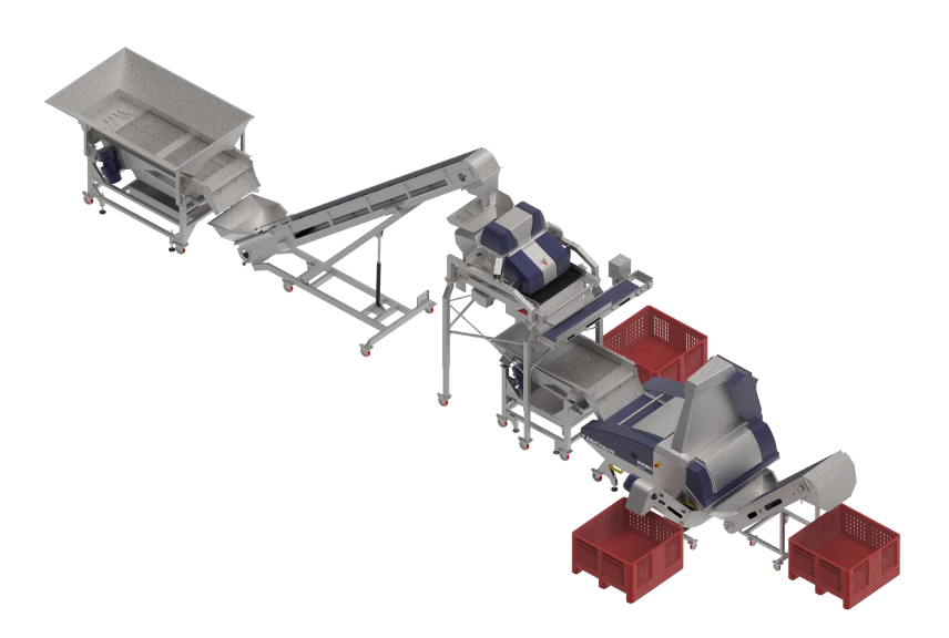 Sortiermaschinen mit der Möglichkeit nach Dichte, durch Optik, Mechanisch oder nach Reifegrad zu sortieren.
